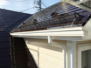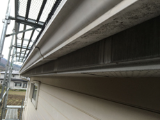 | 屋根は塗装と、落雪防止用のスノーネットと雪止めを取り付けました。冬でも安心です。 | 汚れが目立っていた軒部分も丁寧に塗り替え、軒天の一部を取り替えました。 |
