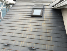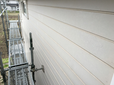 | 施工前は汚れなどで全体的にくすんだ色味になっていました。 | 劣化し色落ちした外壁はご希望の明るい色に塗り替えます。 | 屋根に上ってみると、下からは分からなかった劣化も確認できました。 |