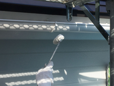 | 施工が完了しました。ホワイトの外壁とブラックの屋根がマッチしていてシックな外観となりました。 | 雨どいはしっかりサビ止めを行ったのでもう安心です。 |