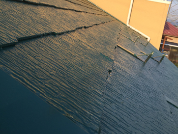 スレート屋根専用のシリコン塗料を使った塗装をご提案しました。また、タスペーサーを挿入することで雨漏りを防ぎます。 |