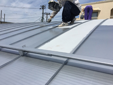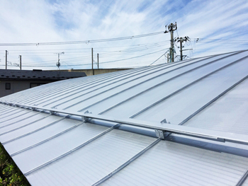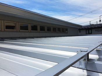 | 施工完了しました。劣化が見られた屋根も綺麗になりました。 | シルバーの屋根は上品で美しい輝きを放っています。 |